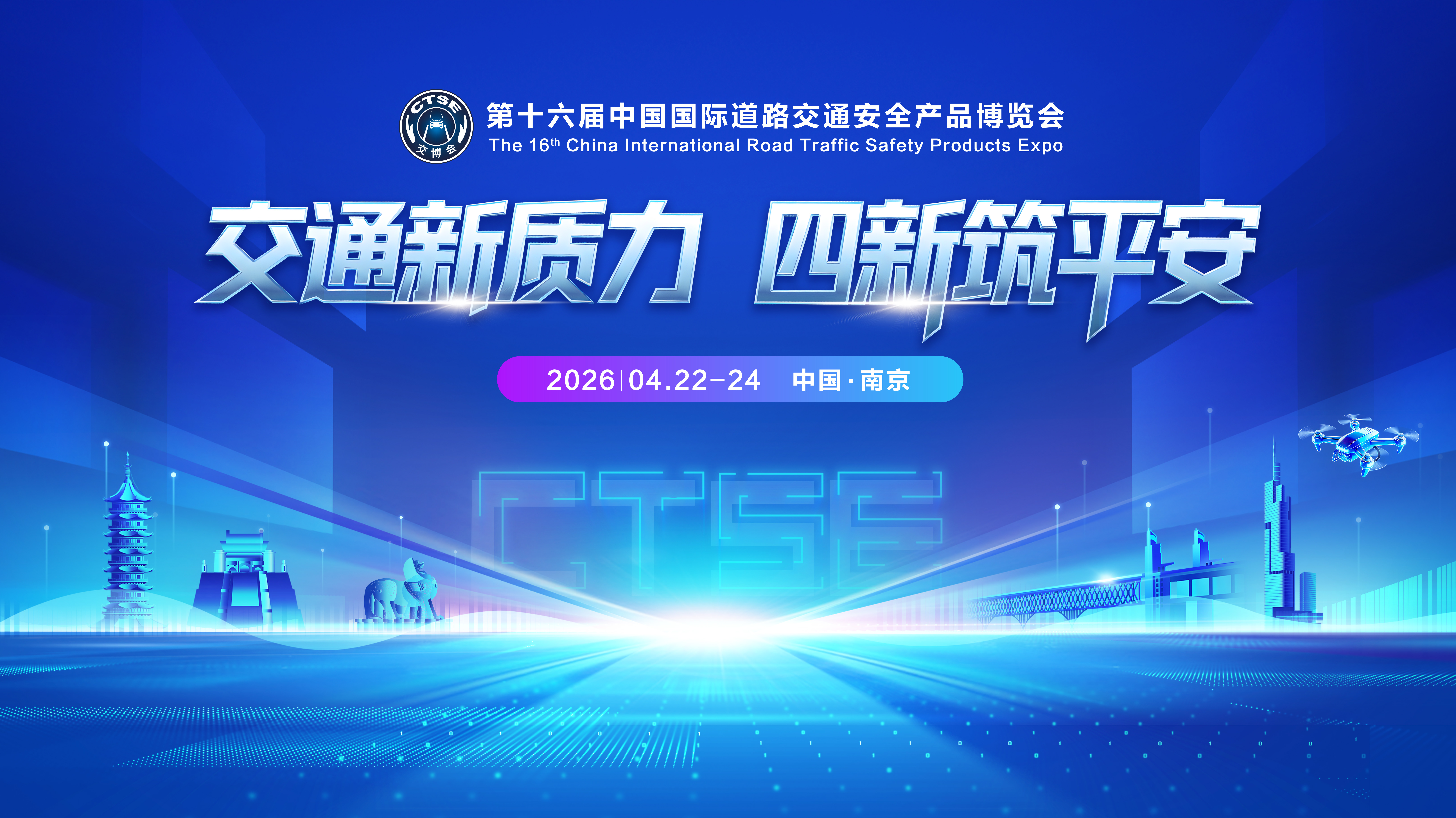 在“十五五”规划扬帆起航的关键节点,为深入贯彻落实党的二十大和二十届历次全会精神,坚定不移实施科技兴警战略,以新警务理念为引领,全面推进数智技术赋能警务实战,加快培育和发展交通管理领域公安交管新质战斗力与行业新质生产力,经公安部、商务部批准,由中国道路交通安全协会主办的第十六届中国国际道路交通安全产品博览会(以下简称“交博会”)将于2026年4月22日至24日在南京国际博览中心盛大启幕。