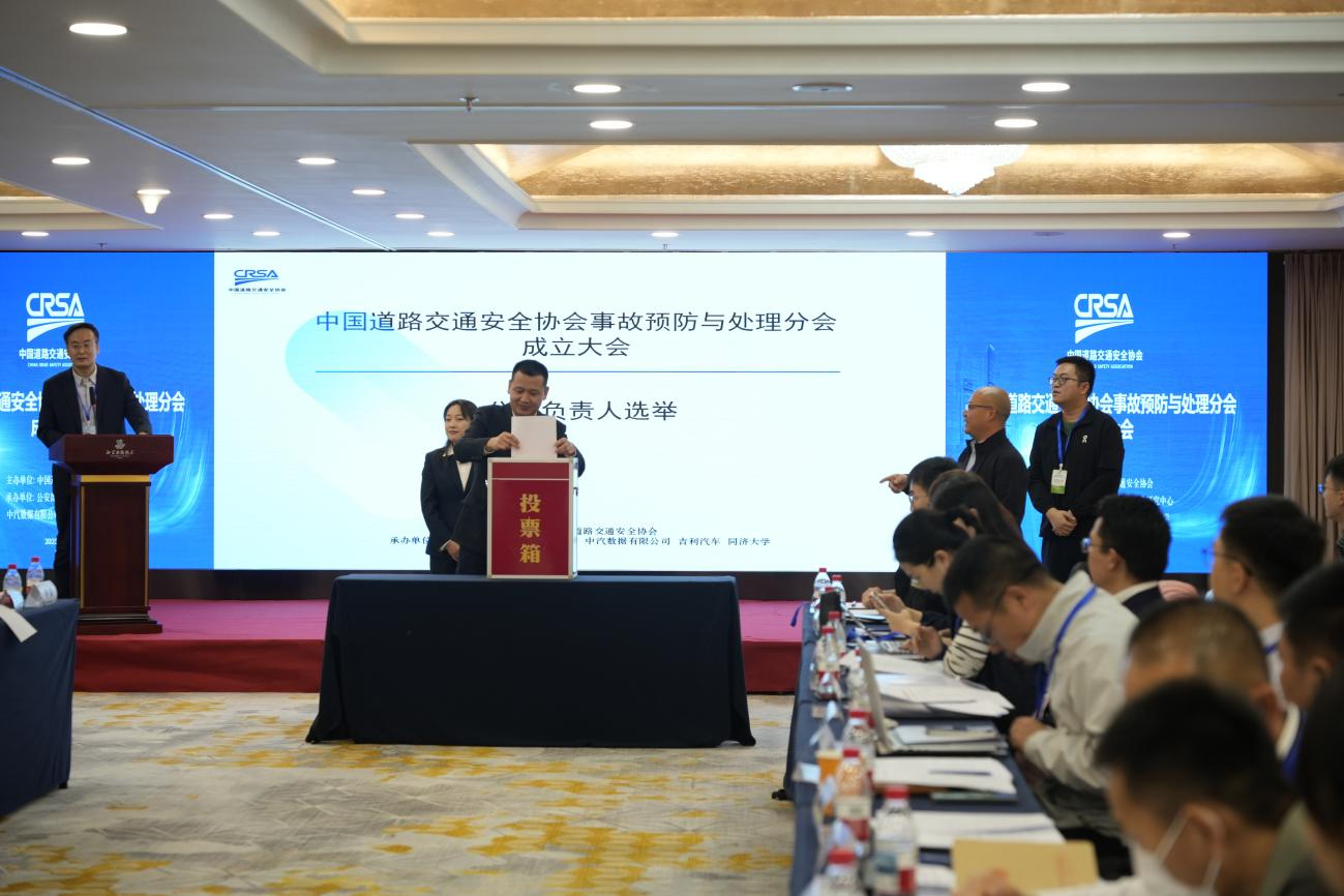 随后,大会以无记名投票方式选举产生分会第一届负责人:公安部道路交通安全研究中心交通安全发展研究部主任周文辉当选分会会长;中汽数据有限公司总经理冯屹、同济大学交通学院教授王雪松、吉利汽车集团首席安全技术官周大永当选分会副会长;中汽数据有限公司副总工程师林淼当选分会秘书长。分会各位负责人分别作表态发言,一致表示,分会成立既是推动我国道路交通安全治理现代化和交通产业高质量发展的必然之举,又是构建交通事故预防和处理研究生态体系的战略行动。分会将在协会的领导下,紧紧围绕数据共享、技术协同、标准共研、实践应用等方面开展研究,把稳方向、驱动创新、筑牢根基、共建共享,努力将其建设成为技术创新的高地、资源共享的平台、开放协作的桥梁。