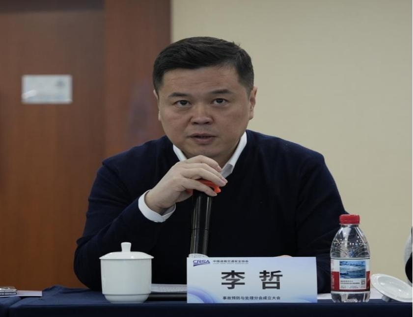 公安部交通管理局事故预防和处理指导处处长李哲讲话。首先,对事故预防与处理分会成立表示祝贺。指出,分会的成立搭建了跨行业、跨领域的交通安全协同治理平台,希望分会充分发挥桥梁和纽带作用,建立共建、共享、共治的协作机制。表示,公安部交通管理局事故预防和处理指导处将全力支持分会工作,在破解行业共性难题中发挥重要作用,为提升全国道路交通事故预防与处理工作水平提供有力支撑。