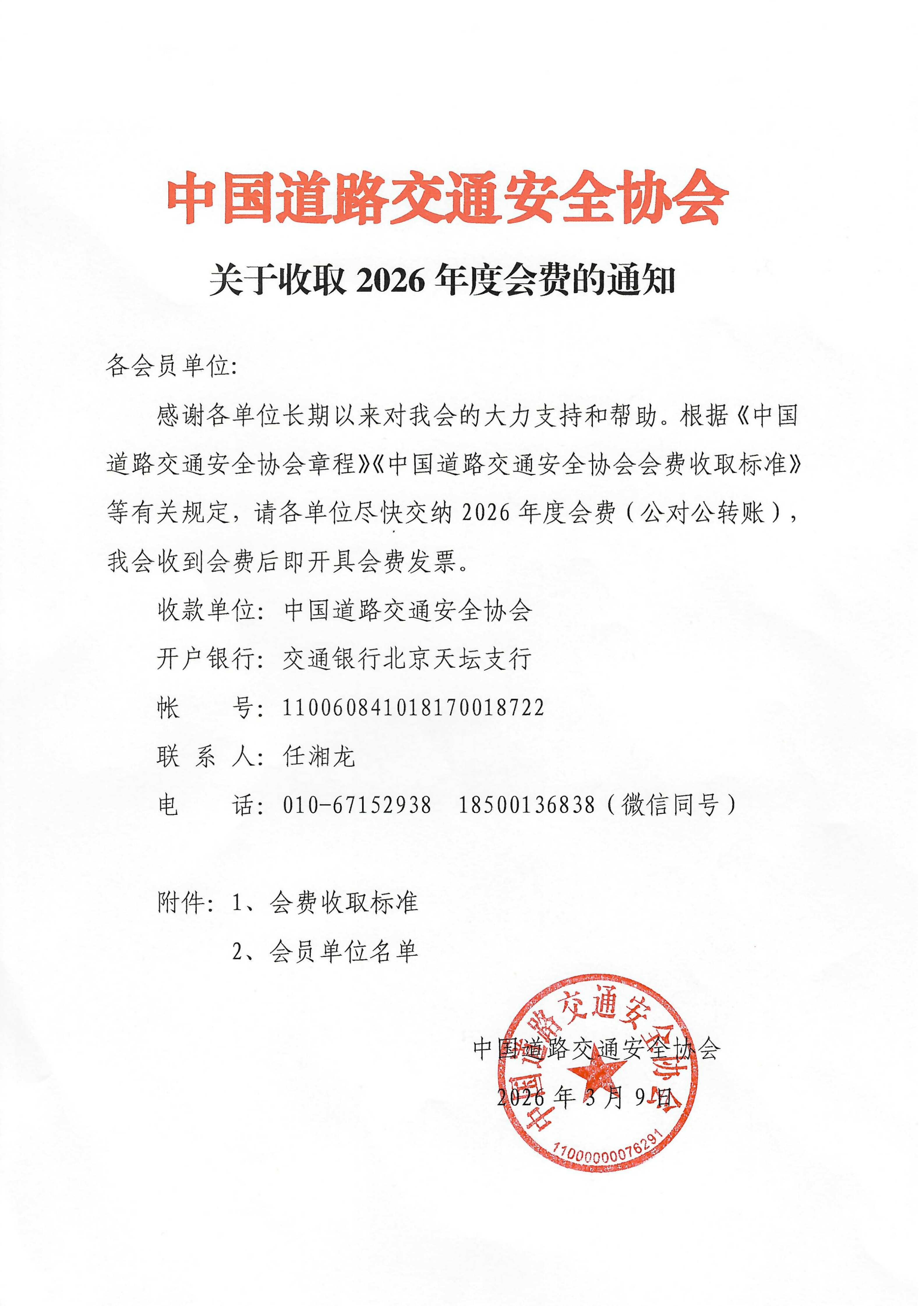 关于收取2026年度会费的通知