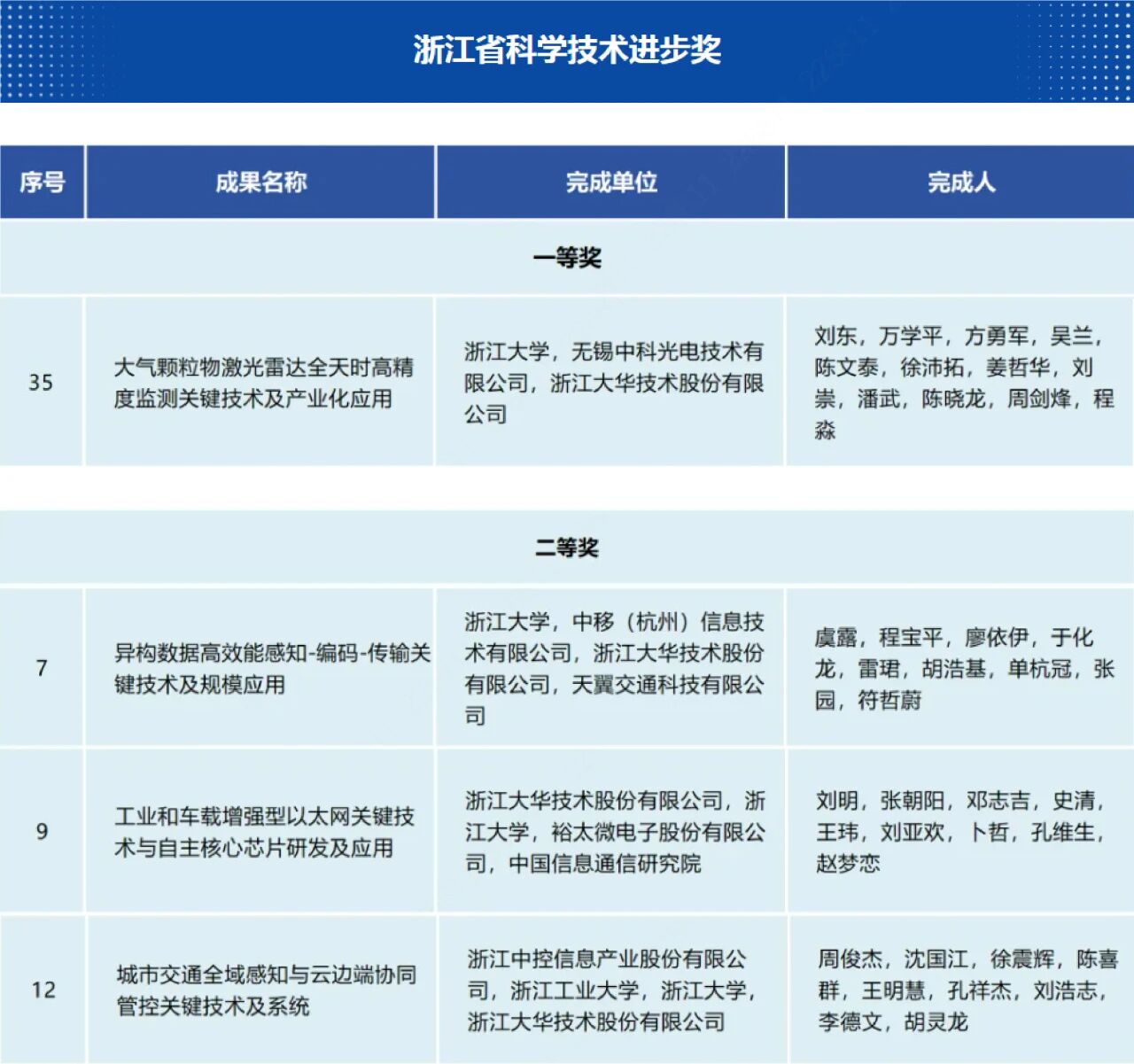 全省建设一流创新生态打造最具竞争力营商环境大会在杭州举行。大会现场对2024年度浙江省科学技术奖进行了表彰,我会会员单位浙江大华技术股份有限公司凭借在核心技术领域的持续突破与产业化实践,斩获4项重磅荣誉。其中,联合完成项目《大气颗粒物激光雷达全天时高精度监测关键技术及产业化应用》荣获浙江省科学技术进步一等奖,另有3个项目荣膺二等奖。